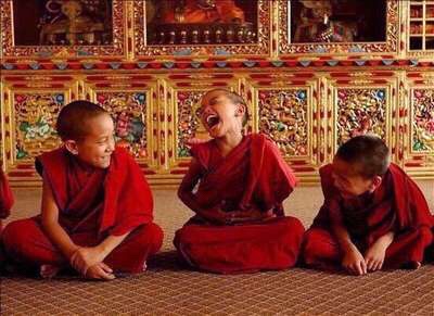 « Tous les êtres doivent être heureux. Que le monde entier soit plein de rires ». Voyez la population du monde entier et vous-même comme des bouddhas hilares, des dieux qui gloussent de joie et des saints qui rigolent.