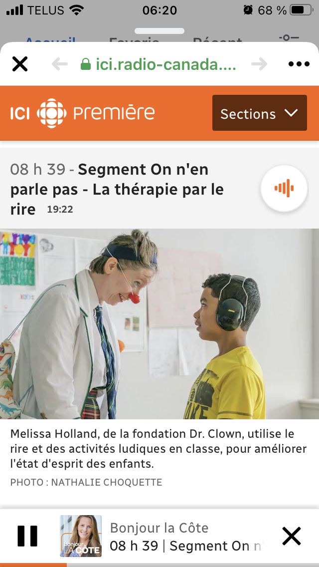 À l’école St-Alexandre de Port-Cartier, deux fois par mois, plusieurs classes reçoivent la visite virtuelle d’un duo de clowns thérapeutiques de la fondation Dr Clown. C’est le cas de la classe d’adaptation scolaire de Marie-Claude Reid. Avec les clowns, les enfants rient et du coup, ils découvrent la persévérance et les habiletés sociales. Bis Petitpas a discuté avec la clown Melissa Holland, qui est cofondatrice et codirectrice artistique de la Fondation Dr Clown, Marie-Claude Reid et son élève Olivier Vigneault.