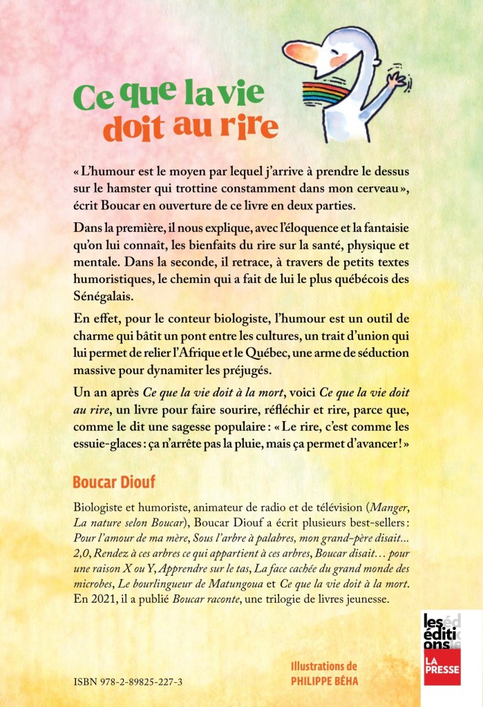 Quelle joie que de lire ce livre sur le Rire du biologiste, animateur et humoriste boucar diouf !